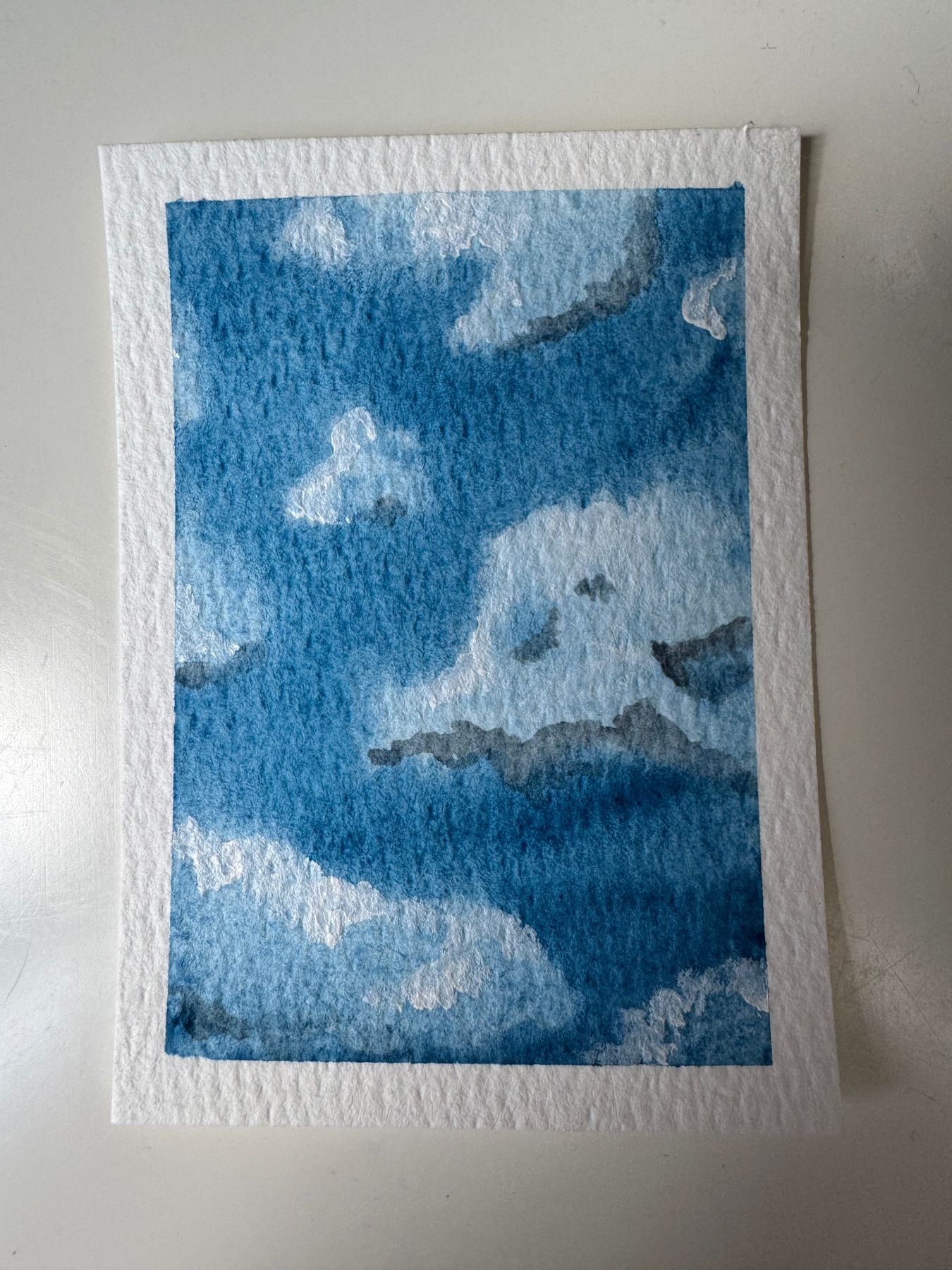 Handmade watercolor piece in textured paper. This is an abstract piece of a gloomy sky. Each order is securely packed so your art will be safe in shipping. Thanks so much for supporting small artists!