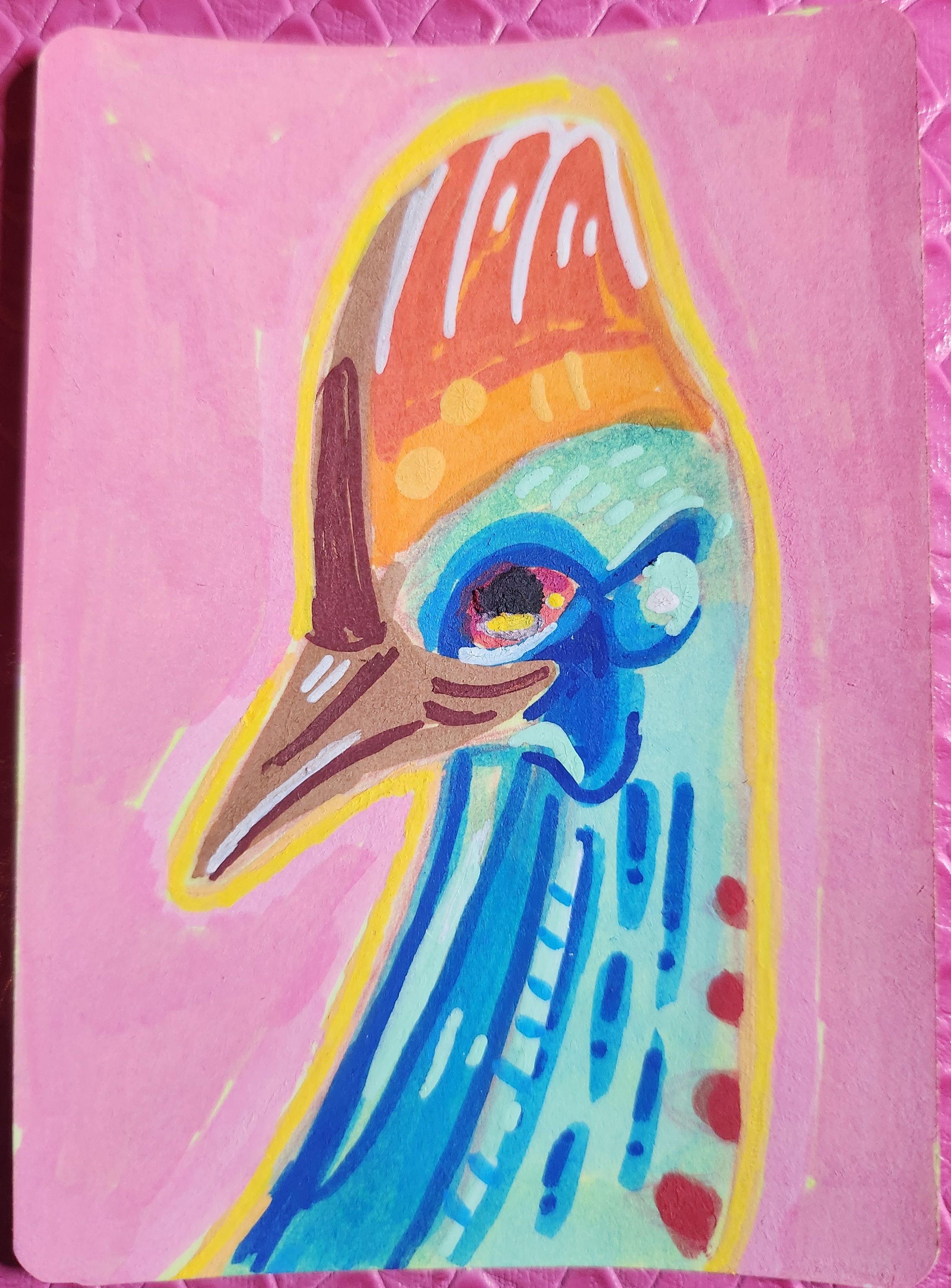 very sassy colorful bird painted with acrylic paint pens