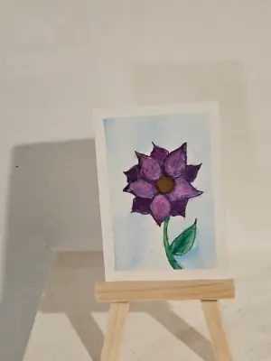 A watercolor and ink painting depicting a singular dark purple bloom to contrast with the light background.