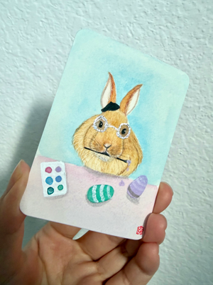 Medium is ink on watercolor on paper, dated and signed on back. Signature stamp design in bottom right corner of artwork. The center metallic watercolor is color shifting. It’ll shift from a pink to orange to yellow to green depending on the angle. Shipped in an envelope with a stamp. No tracking available at this
