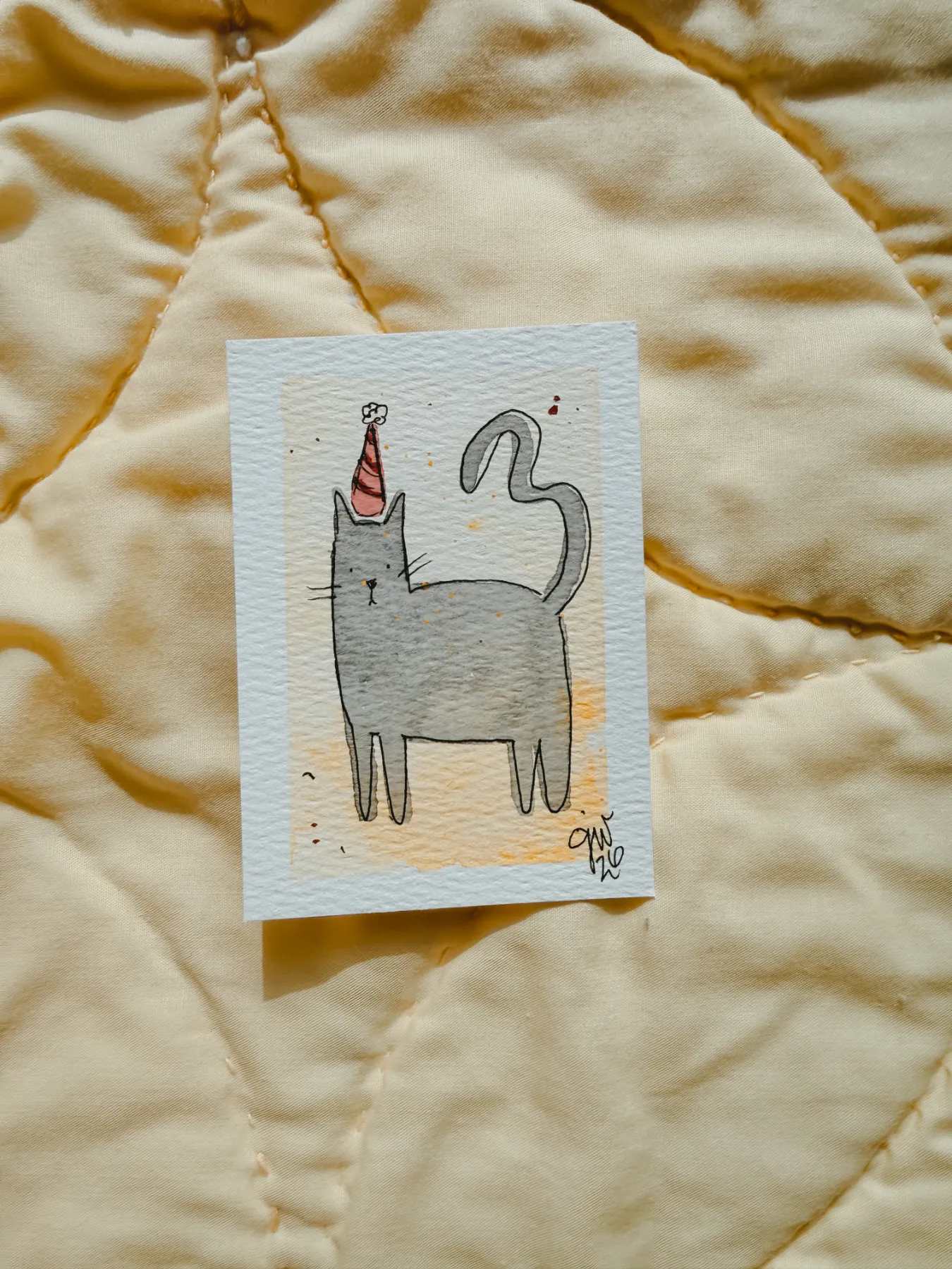 Gray Cat with Party Hat | aceo art | TinyGallery