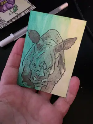 2.5in x 3.5in ACEO Watercolor and Ink Funny little guy isn't he?