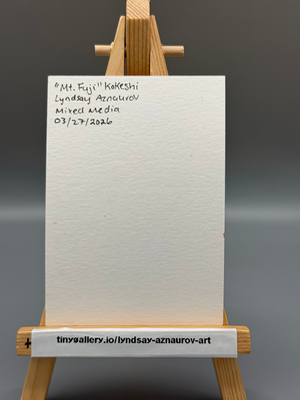Inspired by dolls that I collect, this Kokeshi doll features Mt. Fuji. 2.5x3.5” mixed media. I ship all ACEOs via USPS in a stamped envelope. Thanks for looking!
