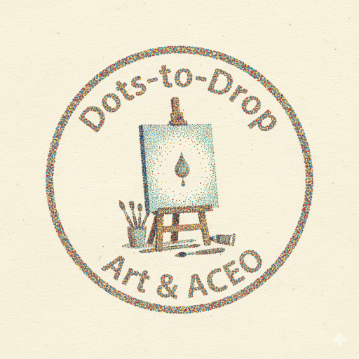 Nature’s intricate architecture, captured in ink and wash. The third installment of the Berry Cute Collection, "Black Vine" shifts the focus to the wild, sprawling beauty of a bramble. This original ACEO explores the delicate balance between the soft, sprawling nature of watercolor and the structured, rhythmic precision of pointillism. Set against a dreamy lavender watercolor sky, a series of blackberry vines wind across the frame. I used a dense layering of dark violet and emerald green dots to create the heavy, sun-ripened weight of the berries and the textured veins of the leaves. The result is a piece that feels alive with movement. As with all pieces in the Dots-to-Drop studio, this card is a "micro-masterpiece" designed for those who appreciate art that reveals more detail the closer you look. Product Details: Title: Black Vine Series: Berry Cute Collection (Card 3 of 8) Format: ACEO Original Art Dimensions: 2.5 x 3.5 inches Media: Professional watercolor and acrylic pointillism. Surface: 140lb Cold-press watercolor paper. Authenticity: Hand-signed and numbered (3/8) on the reverse. Shipping & Packaging: This original work is shipped in a clear archival sleeve and placed inside a rigid top-loader to prevent any bending. I offer Free Shipping via standard stamped mail to keep this collection accessible for all hobbyists.