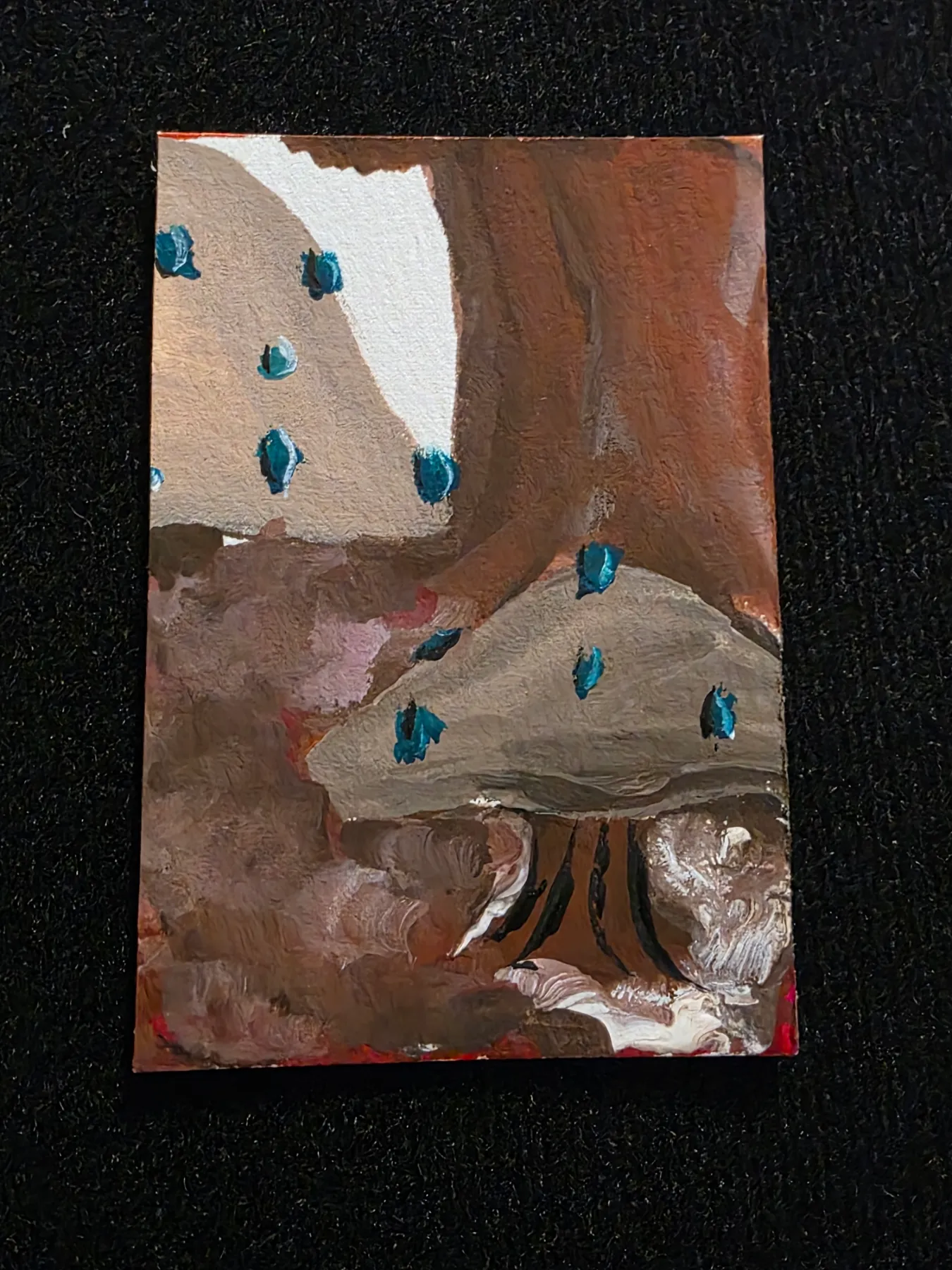 Part if four of the mushrooms Ground Floor painted with gouache. 2.5 x 3.5in on 140lb Cotton Watercolorpaper. Signed and dated on the back.
