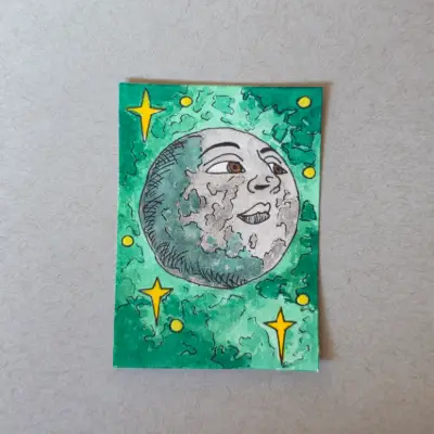 Original ACEO sized 2.5 in x 3.5 in - watercolor on matte hot press watercolor paper. Signed and dated and titled by artist on the back. Unvarnished. Shipped in an envelope with protective sleeve and a stamp. No tracking available at this time.