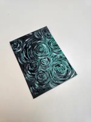 My Inspo: Rain falling on a lake, puddle of water, or ocean is the most beautiful view. I love watching as the water ripples. My Tools: Acrylic Paint I hope this brings you peace like it did when I created it. Size: 2.5 x 3.5 This artwork is sealed and will come in a protective sleeve.