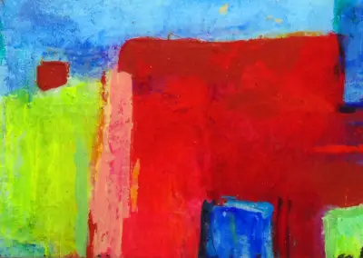 Taos Houses number 1 is one of three in a series of acrylic paintings on Arches paper. These expressionist paintings show houses in Taos, New Mexico. The surface is varnished, and all materials are archival.