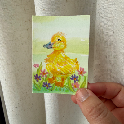 A cute little guy bringing with him the promise of springs. He was created with a mix of watercolor and wax pastels.