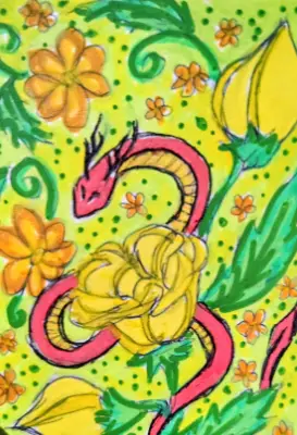 Dragon floral aceo original in acrylic and ink 2.5 x 3.5