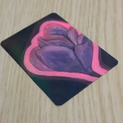 Watercolor and Acrylic. Holographic Laminate on top. Sealed with hot laminate on both sides. Date and Signed on the back. Tracking Not Available.