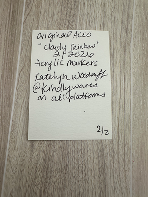 Hand-drawn and colored with acrylic markers on quality watercolor paper. • One part of a 2 part series • Size: 2.5" x 3.5" (standard trading card size) • Medium: Acrylic markers • One-of-a-kind original – not a print • Ships in protective sleeve