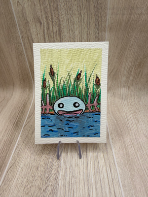 One-of-a-kind ACEO featuring a fan art of the popular Pokemon Wooper in ther natural habitat, hand-painted on watercolor paper using acrylic markers and ink. This is an original miniature artwork, not a print. • ACEO / ATC size: 2.5 x 3.5 inches • Original hand-painted art • Acrylic markers & ink on watercolor paper • Signed on the back • You will receive the exact card shown Perfect for ACEO collectors, cat lovers, or small art displays. Ships securely in a protective sleeve.