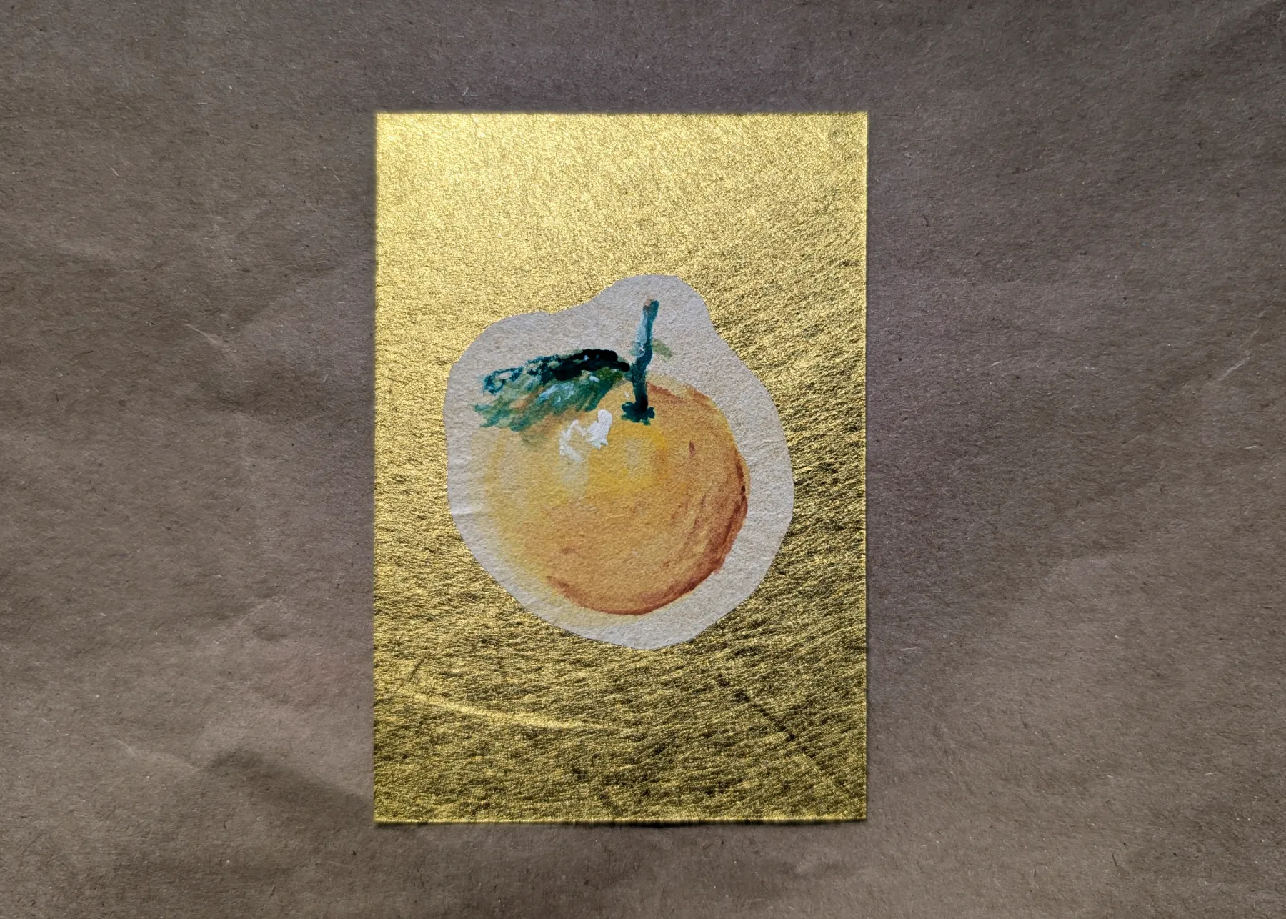 Hand Painted Lucky Mandarin on Calligraphy Paper - Gold Metallic Background | aceo art | TinyGallery