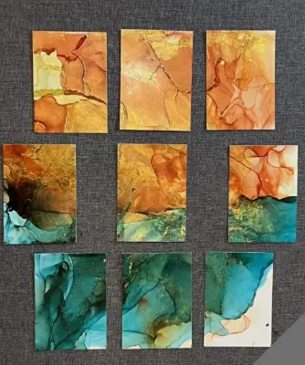 This is a one of a kind, original ACEO artwork - signed, dated and numbered (if part of a series). Materials: yupo paper; alcohol ink; isopropyl alcohol Colors: orange; yellow; teal; green; blue Size: 2.5” x 3.5” – standard ACEO size Note: This painting will be shipped via standard USPS (with stamp) and will not come with a tracking number. I love the process of working with the ink and I'm always excited to see the final outcome! Trust the process! I hope this artwork brings joy and happiness to your home! ©PK Williams