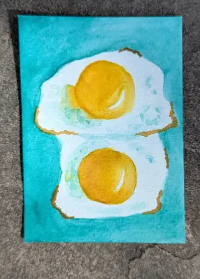 These two eggs were painted from a picture I'd taken of real fried eggs.