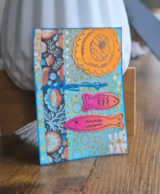 Set of 2 original mini collage artworks with a bright, playful coastal feel. These one-of-a-kind pieces feature layered ocean-inspired papers, hand-drawn details, and bold pink sea life with warm golden sun motifs. Fresh, fun, and full of beachy energy. Original handmade artwork, not prints. Sold as a bundle of two. Perfect for shelf display, a small gallery wall, or gifting.
