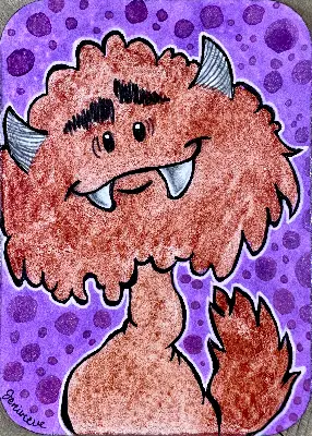 This is an original work of art (NOT a print!). ★ Stock: Premium watercolor paper (hot press) ★ Dimensions: 2.5" x 3.5" (Portrait) ★ Media: brush pen, alcohol markers, gel pens, graphite, pearlescent watercolors ★ Preservation: comes in a removable holographic glitter sleeve, in a top-loader protector ★ Titled, dated, and signed by artist Shipping: Domestic (United States): USPS Ground Advantage with tracking (3-5 business days) International: USPS First Class Letter (untracked, 10-20 business days) Your art is carefully packaged for its journey to you, along with a thank you note and other little happy surprises! Thanks for looking! 😉 Keywords: Fluffy, Monster, Creature, Cute, Big Eyes, Horns, Horned, Fangs
