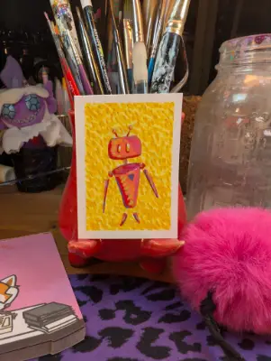 Meet Shirly. Shirley is a Virgo. She is definitely the group's mom. She is the one who plans the vacation down to the minute. Don't worry, you'll have fun, just follow her schedule. Shirley is a great robot. If you do adopt her, just don't be surprised if she tries to organize your closets. Acrylic Marker on Bristol Paper Although effort is made to photograph as true to color as possible, color may vary slightly due to the differences in monitor and device settings (brightness, contrast, saturation, etc).