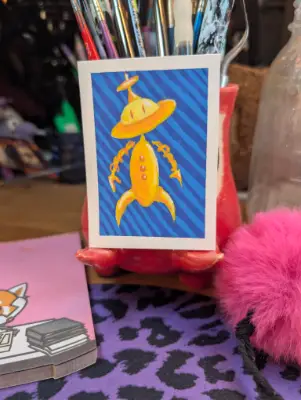 Meet Roy. Everyone says Roy is out of this world! Roy's hobbies include board games, listening to techno (He has robot ears) IYKYK, and reciting sonnets. Roy will be a credit to your personal robot army. Acrylic Marker on Bristol Paper Although effort is made to photograph as true to color as possible, color may vary slightly due to the differences in monitor and device settings (brightness, contrast, saturation, etc).