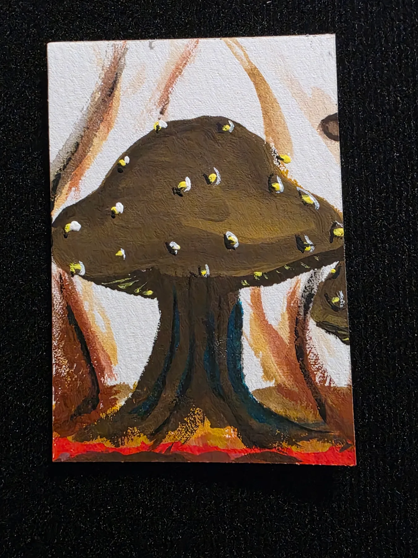 Part of four of the mushrooms Ground Floor painted with gouache. 2.5 x 3.5in on 140lb Cotton Watercolorpaper. Signed and dated on the back.