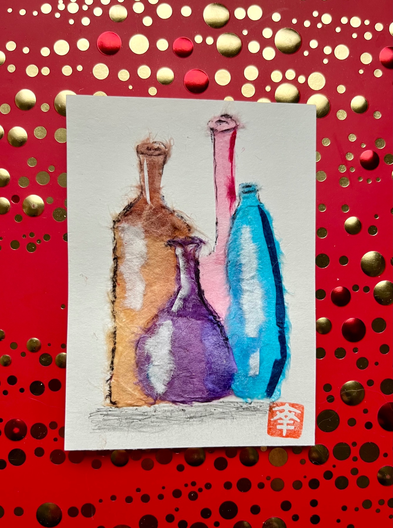 Made from Japanese Washi paper. Aceo 2.5x3.5 card. Ship by USPS mail.