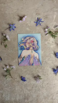 An original ACEO signed, stamped, dated, and numbered by the artist. This piece started with the idea of a floral spirit and slowly turned into Liora. I leaned into soft color blending and delicate details, especially in her wings and jewelry. She feels tied to petals and passing moments—something light, but still present. Mediums: Alcohol Markers, Acrylic Paint, Colored Pencils Shipping is free and packaged with care. Usually shipped within 2-5 days.