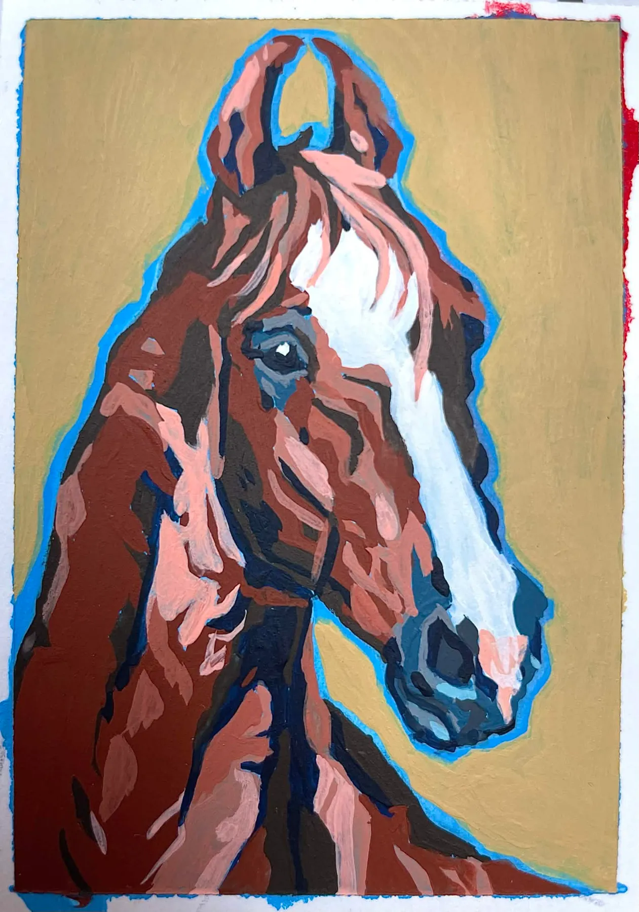 Original ACEO featuring a Marwari Horse. • Size: 2.5 x 3.5 inches • Medium: Gouache • One-of-a-kind original • Signed on the back