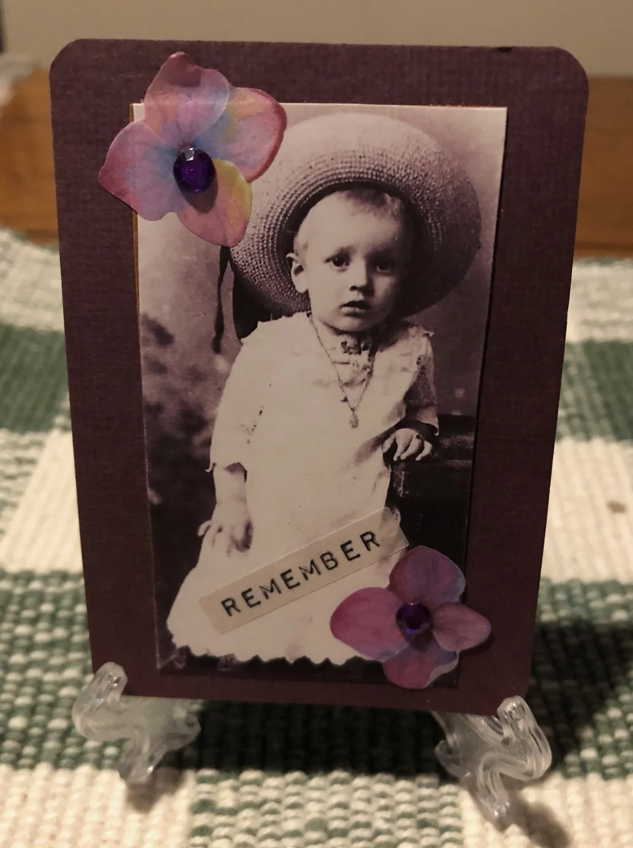 This mixed-media image was created using scrap papers, craft gems, and Washi flower stickers on cardstock. Original ACEO (Art Cards, Editions & Originals) by Glenda 3.5 x 2.5 inches miniature collectible art trading card OOAK (one-of-a-kind) Signature, Date, Title, No. (OOAK), & Contact Info on Back Ships from Vermont to U.S. Addresses Only Comes in a protective sleeve Free Shipping via USPS