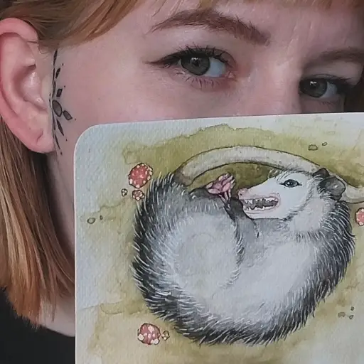 My name is Lela, I'm a hobby artist in her 30s. I tend to lean on making art related to nature/critters/bones but I also enjoy cutesy art styles and silly little things.